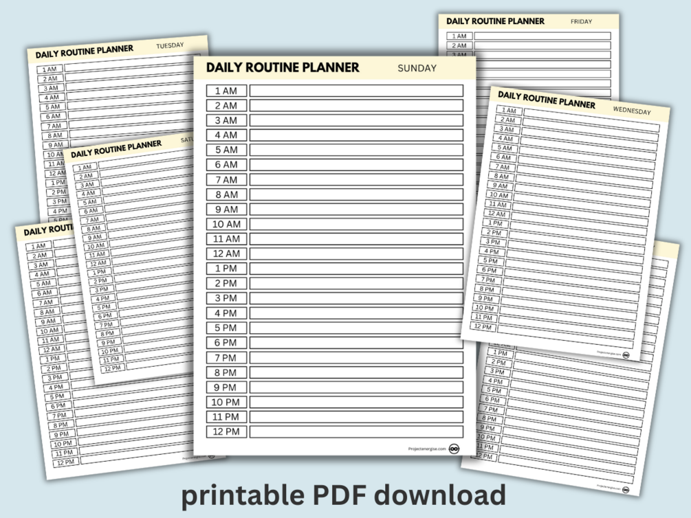 Download your free printable daily routine planner now. One sheet for every day of the week to schedule your healthy daily habits.