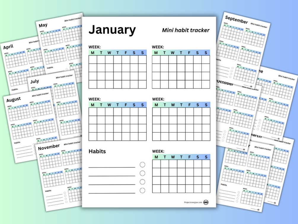 Download your own mini habit tracker and start tracking your new habits every week, every month with this beautifully simple mini habit tracker.